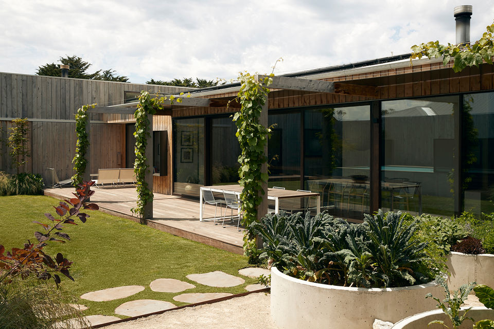 An 8 star house that focuses on sustainability, energy and water efficiency, luxury and style. Constructed with carefully selected materials to reduce the environmental footprint of the home. Prefabricated materials, locally salvaged timbers and recycled materials are used to reduce the carbon footprint, waste and onsite impacts. The house is designed to be highly efficient and requires minimal artificial heating and cooling. This is achieved with passive design principles, tightly sealed envelope, high levels of insulation, carefully considered thermal mass, and highly efficient fixtures and appliance. Electricity will be generated via a 12kw solar system. Water harvesting, grey water system and red valves all help limit the water usage.